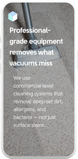 We use commercial-level systems that remove deep-set dirt, allergens, and bacteria—not just surface stains.